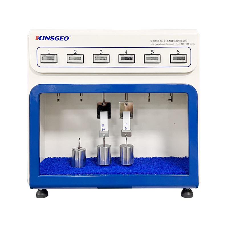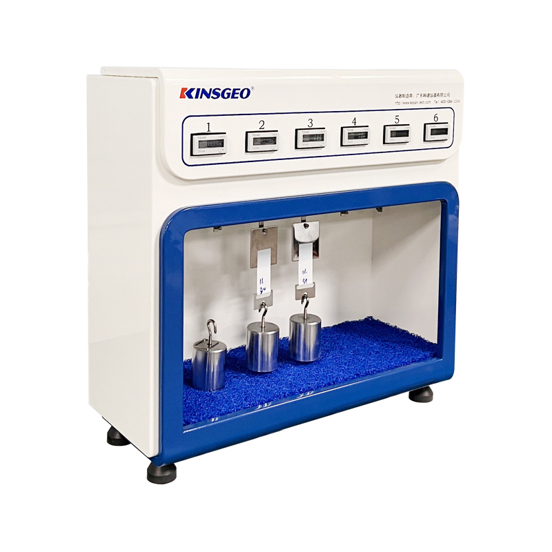 KJ-6006常溫型膠帶保持力試驗機針對膠帶的粘著力做靜太負荷試驗,在一定的荷重下自動記錄膠帶所能保持的時間,以確認膠帶粘著的時效。裁1英寸寬的長條狀膠帶貼于規定的SUS#304不銹鋼板上,經2kg的標準滾輪以每分鐘300mm的速度來回碾壓三次,將鋼板掛于試驗機上,加上規定的砝碼,當膠帶自鋼板上掉落后,計時器會自動保留試驗時間,用來評定膠帶粘著的持久性。該膠帶保持力試驗機廣泛應用于:膠粘帶,保護膜,不干膠,標簽,泡棉,膠粘劑等膠粘制品行業,具有試件掉落時間自動記憶功能,無需操作人員在試驗過程中進行監控;結構美觀大方,操作方便。